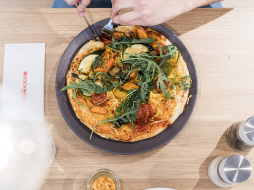 Für eine entsprechende Verpflegung sorgt das OTTO-Kochwerk mit drei verschiedenen Kantinen und zwei Bistros. Es gibt ein vielfältiges Frühstück, sowie täglich wechselnde Mittagsangebote, verschiedene Salatbars und auch vegetarische bis vegane Optionen. Und vor allem in den wärmeren Monaten lädt der grün bepflanzte und mit einem Springbrunnen ausgestattete Boulevard im Herzen des OTTO-Campus dazu ein, die Pause draußen zu genießen – oder dort zu arbeiten.