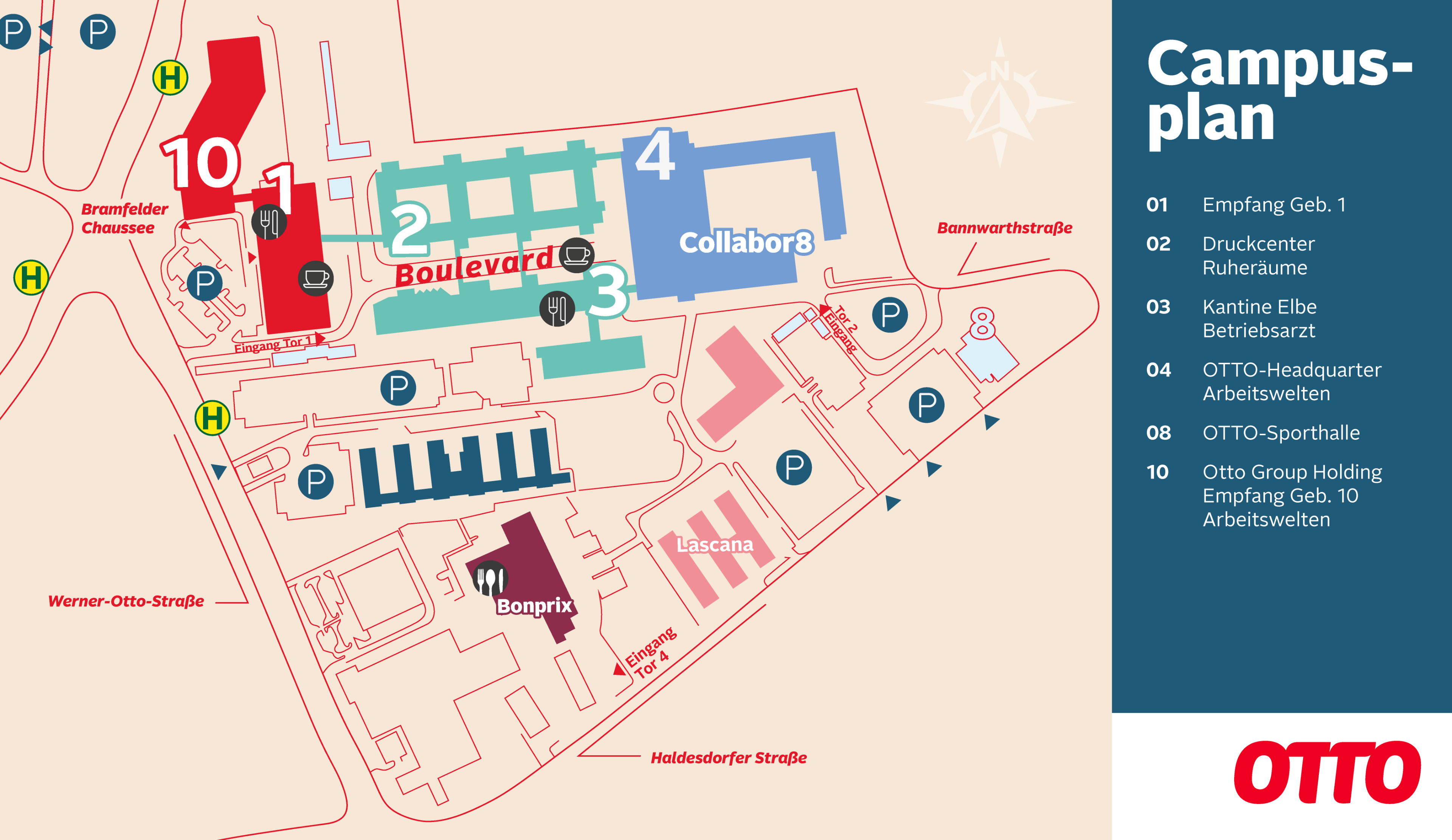 Der interaktive Campusplan unseres Headquarters in Hamburg bietet dir Orientierung darüber, wo sich unsere Büroflächen, Ruheräume, einzelne Campus-Services oder die nächste Bushaltestelle für die Anfahrt befinden. Und für einen echten Einblick lohnt sich unbedingt die 360° Tour durch das Headquarter.