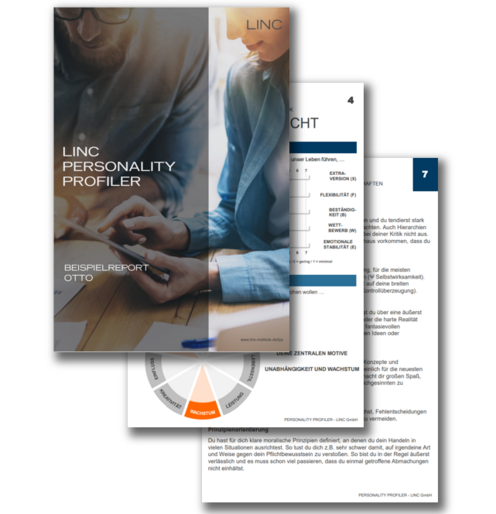 The LINC Personality Profiler is an online personality analysis tool based on the most well-founded model in personality psychology - the BIG FIVE. The tool aims to paint a holistic picture of personality and captures character traits, motives and competencies. The results offer users the chance to take a fresh look at their own personality and develop further.